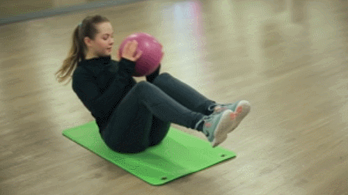 엉덩이를 대고 앉아서 볼이나 생수병 등을 양손에 쥐고 시작하세요. 상체를 서서히 뒤로 젖히고, 다리를 공중으로 띄워서 무릎을 구부립니다. 복부에 힘을 주고 자세를 유지하고, 상체를 좌우로 움직이는 트위스트 동작을 추가합니다. 1분 동안 진행하세요.