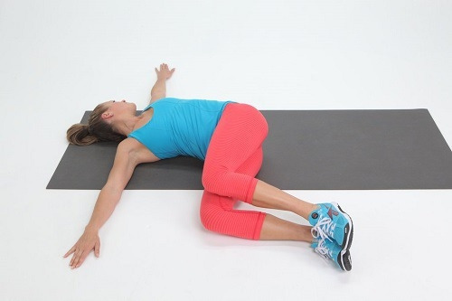 매트에 등을 대고 누운 상태에서 팔을 양옆으로 뻗으세요. 그리고 다리를 공중으로 들고 무릎을 구부리세요. 그런 다음 다리를 오른쪽으로 넘겨서 바닥으로 붙이면 되는데요. 왼쪽으로 넘기는 동작으로 이어가며, 1분간 양쪽으로 반복하세요. 고개는 다리와 반대로 움직입니다.