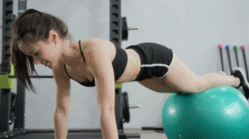 짐볼과 거리가 떨어진 거리에서 팔을 대고 엎드립니다. 그리고 짐볼 위에 다리를 올리고, 플랭크 자세를 완성하세요. 그런 다음 짐볼을 가슴 방향으로 당겼다가 되돌리면 되는데요. 1분 동안 몸을 접았다가 펼치면서 운동하세요.