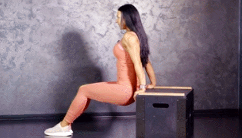 의자나 박스 등 손으로 잡을 수 있는 도구 앞에 서서 시작하세요. 그리고 손으로 지탱하고, 다리를 앞으로 뻗어줍니다. 그런 다음 엉덩이를 바닥으로 내렸다가 드는 동작을 반복하면 되는데요. 팔꿈치를 90도 각도까지 구부렸다가 펴면서 1분간 운동하세요.