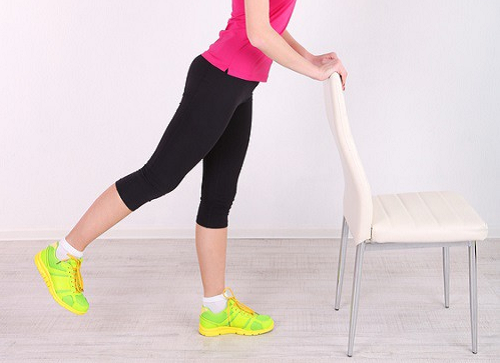 의자를 잡고 서서 발을 모읍니다. 그리고 오른쪽 다리를 뒤로 뻗어주는 동작을 30초 진행하세요. 그런 다음 왼쪽 다리를 뒤로 뻗는 동작을 30초 반복하면 되는데요. 상체는 곧게 유지하고, 엉덩이에 힘을 주면서 운동합니다.