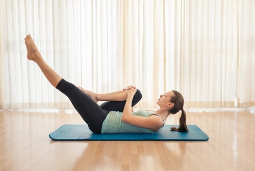 매트에 누워서 다리를 공중으로 띄워줍니다. 그리고 오른쪽 다리의 무릎을 구부리면서 가슴 방향으로 당겨주세요. 그런 다음 양손으로 정강이를 눌러주면서 3초 이상 버티면 되는데요. 원래 자세로 돌아가면, 왼쪽 다리로 동일하게 반복합니다. 1분간 운동하세요.