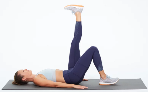 매트에 누워서 무릎을 구부리고, 발바닥을 붙입니다. 그리고 상체를 바닥에 안정적으로 고정하고, 왼쪽 다리를 공중으로 들어주세요. 무릎을 완전히 편 상태로, 다리를 내렸다가 올리는 동작을 반복하세요. 30초 운동 후, 오른쪽 다리로 동일하게 30초 진행합니다.