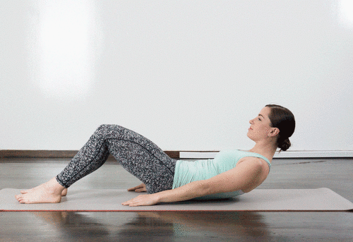 매트에 엉덩이를 대고 앉은 상태에서 상체를 뒤로 숙이면서 다리를 공중으로 띄우고, 무릎을 구부리세요. 손은 가슴 앞에서 모으고, 상체를 왼쪽으로 틀었다가 돌아옵니다. 그리고 오른쪽으로 틀었다가 돌아오세요. 1분 동안 좌우로 움직입니다.