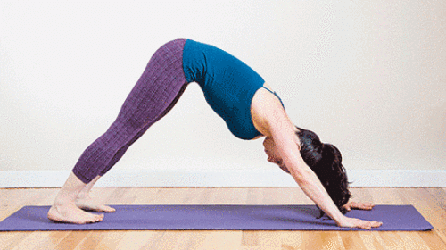 매트에 손을 대고 엎드린 상태에서 발을 손으로 당기면서 엉덩이를 공중으로 들어줍니다. 그리고 발꿈치가 들리지 않도록 완전히 붙이고, 몸 전체를 늘여주세요. 그런 다음 엉덩이를 내리면서 상체를 세우면서 코브라 자세로 전환합니다. 1분 동안 2가지 동작을 반복하세요.