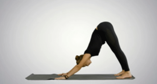 매트에 손을 대고 엎드린 상태에서 엉덩이를 공중으로 드는 자세인 다운도그 자세를 만듭니다. 손과 발의 간격을 좁히면 되는데요. 그리고 오른쪽 다리를 앞으로 당기면서 상체를 세우고, 왼쪽 다리를 붙이면서 로우 런지 자세로 전환하세요. 그런 다음 다운도그 자세로 돌아가고, 왼쪽 다리를 당기는 로우 런지 동작으로 연결합니다. 1분간 2가지 자세로 운동하세요.