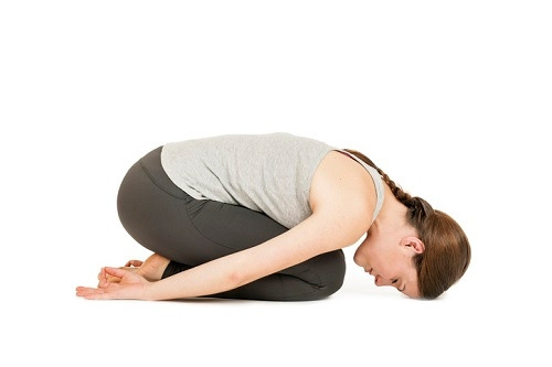 바닥에 무릎을 꿇고 앉아서 시작하세요. 그리고 팔은 몸 옆에 편하게 두고, 상체를 앞으로 숙여줍니다. 그런 다음 이마를 바닥에 붙이고, 상체를 하체에 최대한 붙을 수 있도록 하세요. 허벅지 위에 올린다는 느낌으로 1분간 진행합니다.