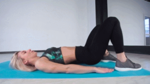 매트에 누워서 무릎을 구부리고, 발을 매트에 붙입니다. 그리고 골반을 밀면서 엉덩이를 공중으로 들어주세요. 그런 다음 엉덩이를 바닥으로 내렸다가 드는 업다운 동작을 반복하면 되는데요. 1분 동안 진행하고, 복부와 둔부에 힘을 주면서 운동합니다.