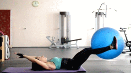 매트에 등을 대고 누운 상태에서 양손으로 짐볼을 잡습니다. 그리고 상체와 하체를 들면서 손에 든 짐볼을 발로 이동하면 되는데요. 더블 크런치 동작을 진행하면서 발에 있는 짐볼을 손으로 옮기면 1회가 완료됩니다. 1분간 운동하세요.