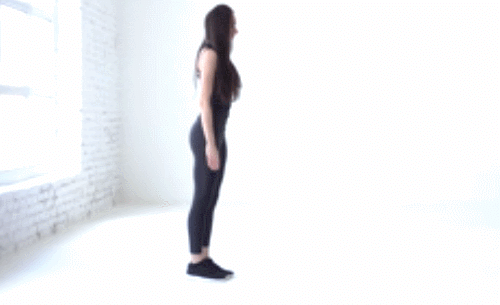 매트에 발을 모으고 서서 오른쪽 다리를 뒤로 뻗습니다. 동시에 상체를 앞으로 숙여서 팔을 머리 앞으로 뻗으세요. 그러면 몸을 전체적으로 T자 모양으로 만들 수 있는데요. 30초 동안 운동 후, 반대편 다리로 뒤로 뻗어서 30초 반복합니다.