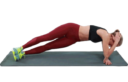 왼쪽 팔뚝으로 옆으로 눕는 사이드 팔꿈치 플랭크 자세로 시작하세요. 그리고 오른손을 머리에 가져갑니다. 그런 다음 몸을 바닥으로 틀면서 오른손을 왼손 방향으로 움직였다가 돌아옵니다. 30초 동안 반복 후, 오른쪽 팔뚝으로 옆으로 누워서 30초 운동합니다.