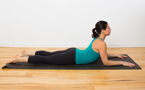 매트에 배를 대고 엎드린 상태에서 시작하세요. 그리고 손을 바닥에 짚으면서 상체를 공중으로 들어줍니다. 그런 다음 무릎을 구부리고, 발바닥을 천장을 향해 들어주세요. 고개를 뒤로 젖히면서 스트레칭을 강화합니다. 1분간 진행하세요.