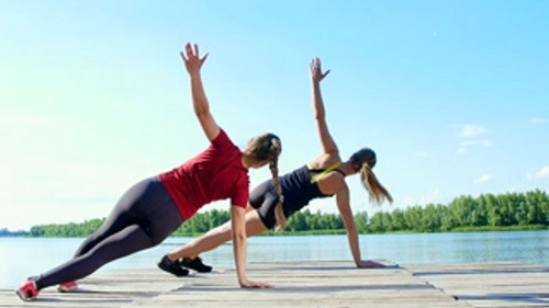 바닥에 플랭크 기본자세로 엎드려서 시작합니다. 그리고 왼팔을 공중으로 올리면서 상체를 개방하세요. 그런 다음 원래 자세로 돌아오고, 오른팔을 공중으로 올리는 동작으로 연결합니다. 1분간 팔을 바꿔가며 사이드 플랭크 동작을 진행하세요.