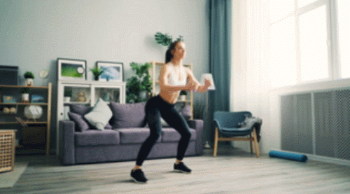 어깨너비보다 넓게 다리를 벌리고 서서 시작하세요. 그리고 엉덩이를 낮추면서 스쿼트를 하고, 일어서면서 오른쪽 다리를 뒤로 구부립니다. 이번에는 스쿼트 후, 왼쪽 다리를 뒤로 구부리는 동작으로 연결하세요. 1분간 다리를 바꿔가며 움직입니다.