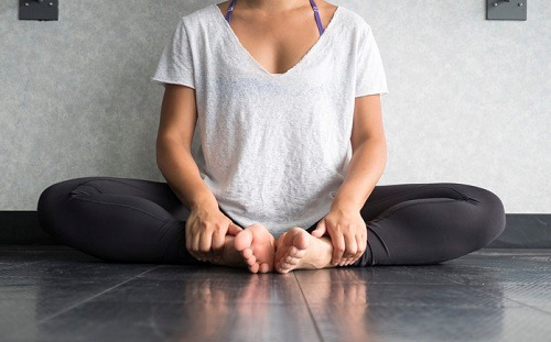 매트에 앉아서 다리를 펴주세요. 그리고 무릎을 구부리면서 발을 골반 방향으로 당기고, 발바닥을 서로 붙이도록 합니다. 상체는 꼿꼿하게 세우고, 시선은 정면을 향하세요. 하체를 바닥에 최대한 붙이고, 호흡하며, 1분간 버팁니다.