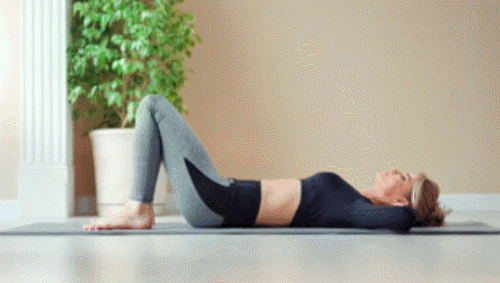 매트에 누운 상태에서 무릎을 세우고 발을 바닥에 고정합니다. 그리고 어깨뼈를 바닥에서 들고, 상체를 왼쪽으로 움직였다가 오른쪽으로 움직이는 동작을 반복하여 진행하세요. 1분간 운동합니다. 운동 중에는 허리를 매트에 고정하며, 자신의 몸 상태에 맞게 범위를 조절하세요.