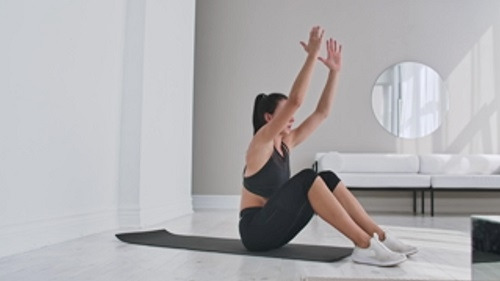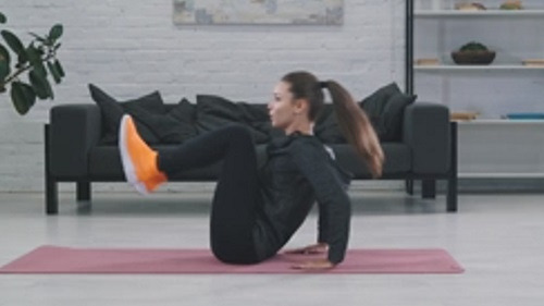 매트에 엉덩이를 대고 앉아서 다리를 펴주세요. 손을 바닥에 짚고, 몸을 V자 모양으로 만듭니다. 그리고 상체와 하체를 당겼다가 펴주는 운동을 반복하면 되는데요. 균형이 흐트러지지 않도록 주의하고, 시선은 정면을 향하며, 1분간 진행하세요.