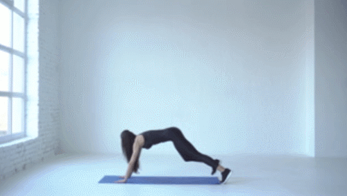 매트에 엉덩이를 대고 앉은 상태로 시작하세요. 그리고 손바닥으로 바닥을 밀면서 엉덩이를 공중으로 띄우면 되는데요. 어깨부터 발목까지 라인을 유지합니다. 1분간 호흡하며 최대한 버티세요. 운동 중에는 엉덩이가 처지지 않도록 힘을 줍니다.