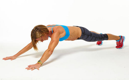 매트에 손을 대고 엎드려서 플랭크 기본자세로 만드세요. 그리고 어깨에서 손목까지 떨어지는 라인을 직선으로 맞춥니다. 시선은 정면을 향하고, 상체가 움직이지 않도록 고정합니다. 그리고 오른쪽 무릎을 오른쪽 팔꿈치 바깥 방향을 당겼다가 돌아가세요. 왼쪽으로 반복하면 1회가 완료되며, 1분간 움직입니다.