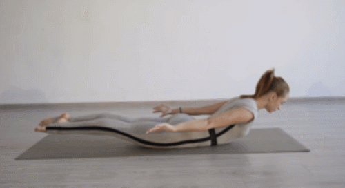 매트에 배를 대고 엎드려서 시작하세요. 그리고 팔을 몸 옆에 두고, 손바닥이 천장을 가도록 만듭니다. 그런 다음 상체와 하체를 동시에 공중으로 들었다가 천천히 내리는 동작을 반복하면 되는데요. 상체를 뒤로 당겨서 확장시킨다는 느낌으로 1분간 반복하세요.