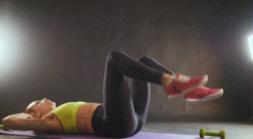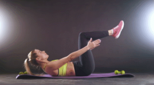 매트에 누워서 손을 머리 옆으로 가져갑니다. 그리고 다리를 엉덩이 넓이로 벌려주세요. 그런 다음 상체와 하체를 동시에 복부 방향으로 당겼다가 원래 자세로 돌아가면 1회가 완료됩니다. 1분간 반복하세요. 속도를 조절하면서 운동 강도를 높일 수 있습니다.