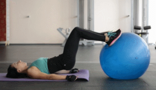 짐볼을 활용하여 브릿지 운동 효과를 높일 수 있는데요. 매트에 눕고, 다리를 짐볼 위에 올립니다. 그리고 엉덩이를 올리고, 브릿지 자세를 만듭니다. 그런 다음 다리를 당겼다가 밀어주는 동작을 1분간 반복하면 되는데요. 엉덩이가 바닥에 닿지 않도록 합니다.