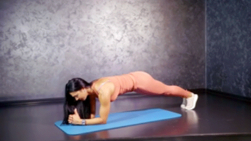 매트에 플랭크 기본자세로 엎드립니다. 그리고 오른쪽 팔꿈치를 구부리면서 팔뚝을 매트에 대고, 왼쪽 팔꿈치를 구부리면서 팔뚝을 매트에 고정하면, 팔꿈치 플랭크 자세로 전환됩니다. 다시 오른쪽 팔꿈치와 왼쪽 팔꿈치를 펴서 기본자세로 돌아오면 1회가 완료됩니다. 1분간 업다운 동작을 반복하세요.