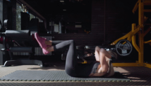 매트에 누운 상태로 다리를 바닥과 90도 각도로 공중으로 띄웁니다. 다리 사이가 벌어지지 않도록 주의하고, 손은 천장 방향으로 올리세요. 그리고 상체를 일으켰다가 내려오는 동작을 1분간 반복하면 되는데요. 운동 중에는 다리가 바닥으로 떨어지지 않도록 무릎을 최대한 펴줍니다.