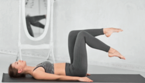 매트에 누운 상태에서 팔은 바닥에 고정하고, 다리를 공중으로 들어서 발끝을 뻗어줍니다. 그리고 복부에 힘을 준 상태로 왼쪽 무릎을 당겼다가 되돌리고, 오른쪽 무릎을 당겨줍니다. 자전거를 타는 것처럼 리드미컬하게 움직이면 되는데요. 1분간 다리를 교차하세요.