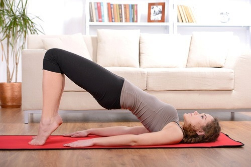 매트에 누운 상태에서 팔로 바닥을 누르면서 몸을 띄우세요. 브릿지 자세를 만들면 되는데요. 발꿈치를 들면서 변형 자세로 전환합니다. 이 상태로 최대한 버티면 되는데요. 복부와 둔부에 힘을 주고, 사선으로 유지하면서 1분 동안 버팁니다.