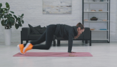 매트에 손을 대고 엎드린 상태에서 준비하세요. 그리고 왼쪽 무릎을 왼쪽 팔꿈치 방향으로 당겼다가 되돌리고, 오른쪽 무릎을 오른쪽 팔꿈치 방향으로 당겼다가 원위치합니다. 1분간 다리를 번갈아 움직이면서 달리기를 하는 것처럼 진행합니다.