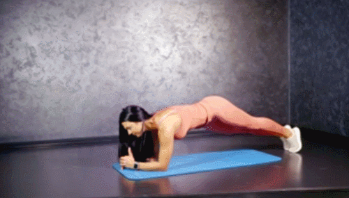 팔뚝을 대고 엎드려서 팔꿈치 플랭크 자세로 시작합니다. 그리고 엉덩이를 왼쪽으로 내렸다가 돌아오고, 오른쪽으로 내렸다가 돌아오세요. 1분 동안 엉덩이를 좌우로 떨어뜨리면 되는데요. 균형을 유지하면서 골반이 바닥에 닿지 않도록 합니다.