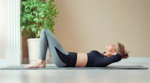 매트에 누워서 무릎을 구부리고, 발을 바닥에 붙이세요. 그리고 손은 머리 옆으로 옮기거나 뒤로 보내서 깍지 껴 잡습니다. 그런 다음 상체를 들었다가 내리는 크런치 동작을 1분간 반복하면 되는데요. 허리를 과하게 꺾지 말고, 복근에 자극을 느끼면서 운동합니다.