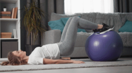 매트에 누워서 짐볼이나 소파 등에 발바닥을 올리고 시작합니다. 그리고 팔을 바닥에 누르면서 몸을 지탱하고, 엉덩이를 들어서 브릿지 자세를 만드세요. 그런 다음 천천히 원래 자세로 돌아오고, 다시 엉덩이를 들어서 브릿지 동작을 진행합니다. 1분간 업다운 동작을 반복하며, 균형을 잃지 않도록 주의하세요.