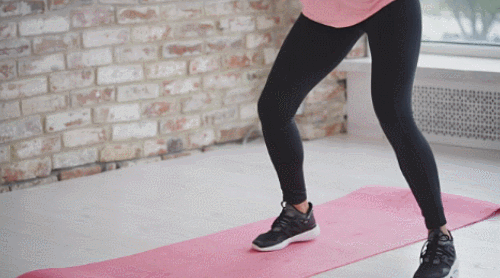 다리를 모으고 선 상태에서 손을 가슴 앞으로 모아줍니다. 그리고 오른발을 오른쪽으로 이동하면서 엉덩이를 낮추고 스쿼트를 1회 진행하세요. 일어서면서 원래 자세로 돌아옵니다. 이번에는 왼발을 왼쪽으로 이동하면서 스쿼트를 진행합니다. 좌우로 움직이면서 1분간 반복하세요. 100개를 목표로 운동합니다.