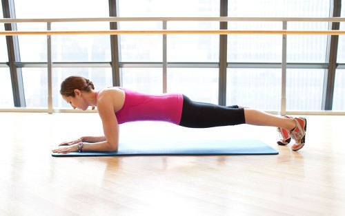 매트에 엎드린 상태에서 팔꿈치를 구부리고, 팔뚝을 바닥에 고정하면, 팔꿈치 플랭크로 전환됩니다. 그리고 발목을 손목 방향으로 조금씩 당기면서 엉덩이를 공중으로 들고, 돌핀 플랭크 자세를 만드세요. 무릎을 완전히 펴고, 1분간 버팁니다.