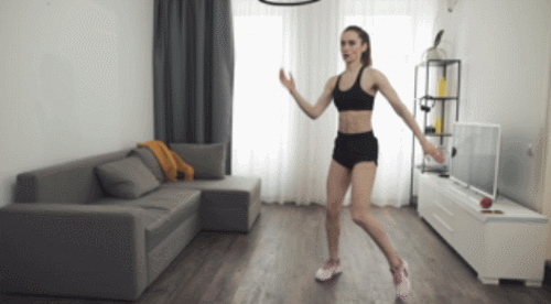 변형 어깨너비보다 넓게 다리를 벌리고 서서 시작하세요. 그리고 왼쪽 무릎을 당기면서 오른쪽 팔꿈치를 내려서 서로 만나도록 합니다. 이번에는 오른쪽 무릎을 당기면서 왼쪽 팔꿈치를 내려주세요. 점차 속도를 높이면서 리드미컬하게 1분간 반복합니다.