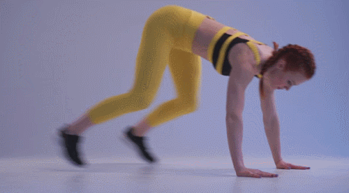 서 있는 상태에서 손바닥을 바닥에 대고, 점프하여 플랭크 자세를 만듭니다. 다시 점프하여 다리를 손목 방향으로 당기고, 일어서면서 점프하여 손을 머리 위로 올리세요. 착지하면서 플랭크 자세를 만들면 1회가 완료되는데요. 1분간 반복합니다.