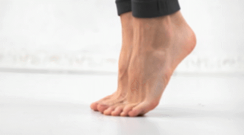 다리를 모으고 매트에 서서 시작합니다. 그리고 왼발을 들었다가 내리면서 오른발을 드는 동작으로 연결하면 되는데요. 1분간 발꿈치를 드는 동작을 천천히 반복하세요. 운동 강도를 높이려면, 동시에 들어주거나 무릎을 올리는 동작을 추가할 수 있습니다.