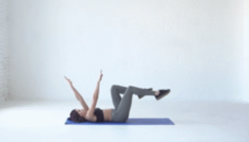 매트에 눕고, 다리를 들어서 무릎을 90도로 구부립니다. 그리고 왼팔을 뒤로 뻗으면서 동시에 오른발을 앞으로 뻗어주세요. 원래 자세로 돌아오면, 반대편 팔과 다리를 뻗어줍니다. 복부에 힘을 주면서 1분간 팔과 다리를 움직입니다.