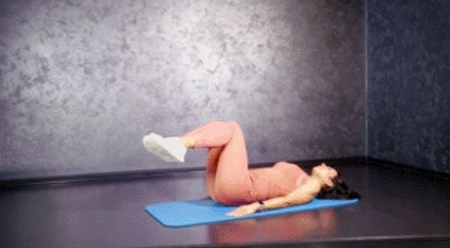 매트에 등을 대고 눕고, 무릎을 세우며, 발을 붙이세요. 그리고 상체를 일으킨 상태에서 몸을 좌우로 움직이면 되는데요. 복부의 압박감을 느낄 수 있도록 충분히 움직이면 되는데요. 상체를 완전히 내리지 않고, 1분간 운동합니다.