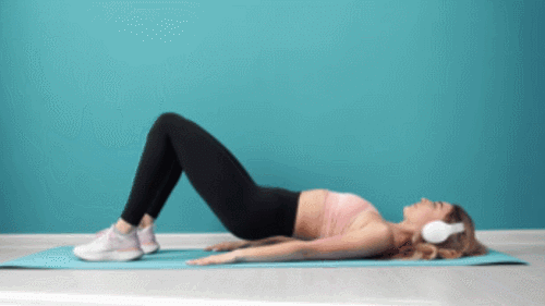 매트에 누운 상태에서 무릎을 세우고, 발을 고정합니다. 팔은 뻗어서 편하게 바닥에 댑니다. 그리고 엉덩이를 들어서 몸을 사선으로 만들었다가 천천히 원래 자세로 돌아오세요. 엉덩이를 들었다가 내리는 동작을 1분간 반복합니다.