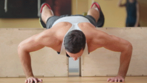 소파나 침대 등에 다리를 올리고 엎드리세요. 손바닥은 바닥에 대고, 발보다 손을 낮은 위치에 있도록 합니다. 그리고 팔꿈치를 구부리면서 몸 전체를 바닥으로 내렸다가 올라오면 1회가 완료됩니다. 팔굽혀펴기 변형 동작을 진행하세요.