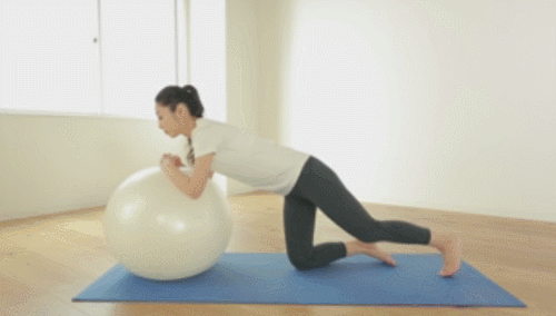 짐볼 위에 팔뚝을 대고 엎드리는 팔꿈치 플랭크 변형 동작을 진행하면 되는데요. 몸을 곧게 뻗어서 균형을 유지할 수 있도록 합니다. 중심을 잡기 어렵다면, 벽에 짐볼을 기대고, 안정적으로 진행할 수 있습니다. 1분간 버티세요.