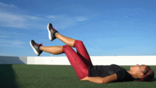 매트에 등을 대고 눕고, 복부에 힘을 주면서 허리를 바닥에 완전히 붙이세요. 그리고 다리를 공중으로 띄웁니다. 그런 다음 무릎을 살짝 구부리고, 왼쪽 다리를 공중으로 들었다가 내리면서 오른쪽 다리를 공중으로 들어줍니다. 다리를 번갈아 교차하면서 1분간 운동하세요.