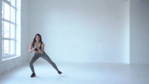 다리를 모으고 바닥에 서서 무릎을 살짝 구부립니다. 그리고 손을 가슴 앞에서 모아서 잡으세요. 그런 다음 왼쪽으로 이동하면서 런지 동작을 진행합니다. 이번에는 오른쪽으로 이동하면서 사이드 런지 운동을 반복하세요. 1분간 진행합니다.