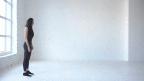바닥에 서서 상체를 앞으로 숙입니다. 손바닥을 짚고, 앞으로 조금씩 움직이면서 플랭크 기본자세를 만들면 되는데요. 그리고 다리를 손목 방향으로 당기면서 원래 자세로 돌아옵니다. 1분 동안 플랭크 자세를 만드는 동작을 반복합니다.