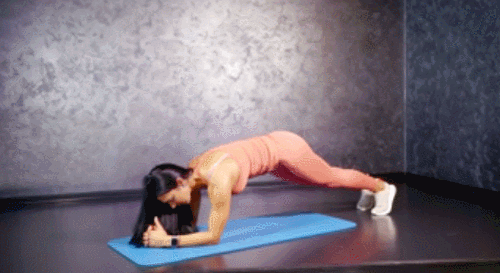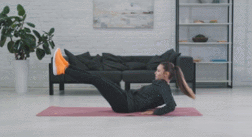 매트에 앉아서 손바닥을 대고, 상체를 뒤로 기울입니다. 그리고 다리를 공중으로 들고, 무릎을 구부리세요. 그런 다음 몸을 최대한 폈다가 다시 모아주는 동작을 반복하면 되는데요. 1분 동안 운동하며, 복부를 지속적으로 자극합니다.