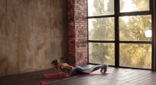 매트에 서서 시작하며, 매트에 손바닥을 짚으면서 다리를 점프하여 플랭크 자세를 만드세요. 그리고 팔굽혀펴기를 1회 진행합니다. 그런 다음 다리를 점프하여 몸을 일으키세요. 다시 점프하여 손을 머리 위로 뻗습니다. 1분 동안 빠르게 반복하세요.