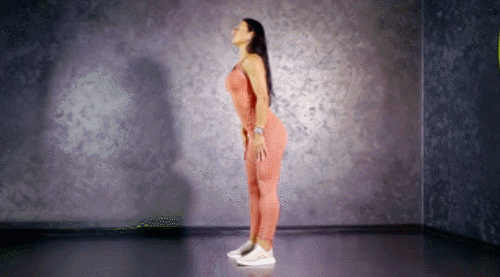 바닥에 다리를 모으고 서서 시작하세요. 그리고 상체를 앞으로 숙이면서 팔을 정면으로 뻗어주면 되는데요. 무릎이 구부러지지 않도록 펴주고, 시선은 손끝을 향합니다. 몸이 ㄱ자 모양이 되도록 만들고 호흡하세요. 1분간 운동합니다.